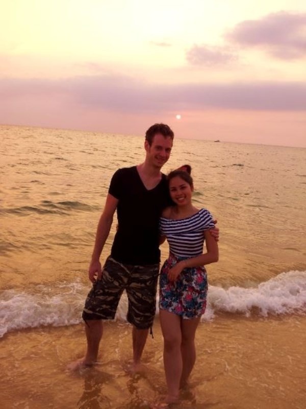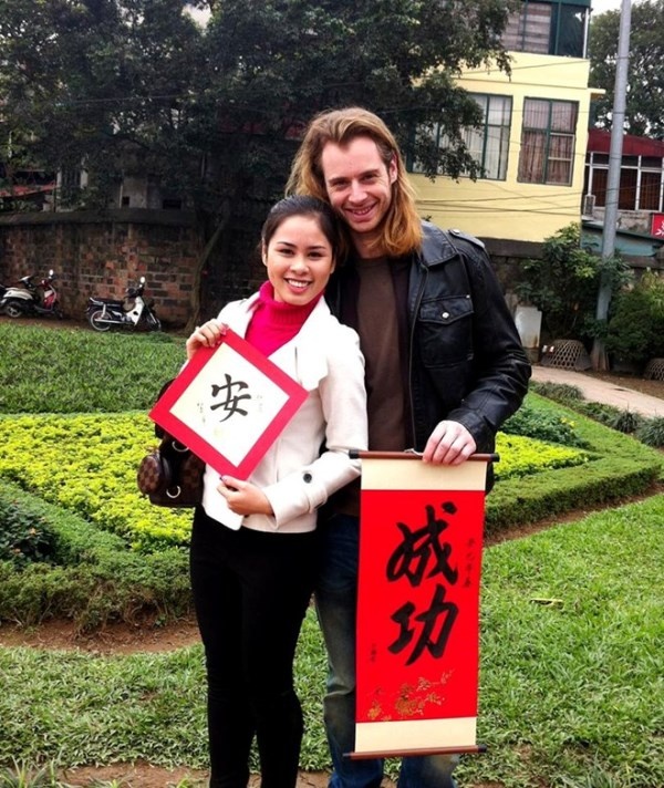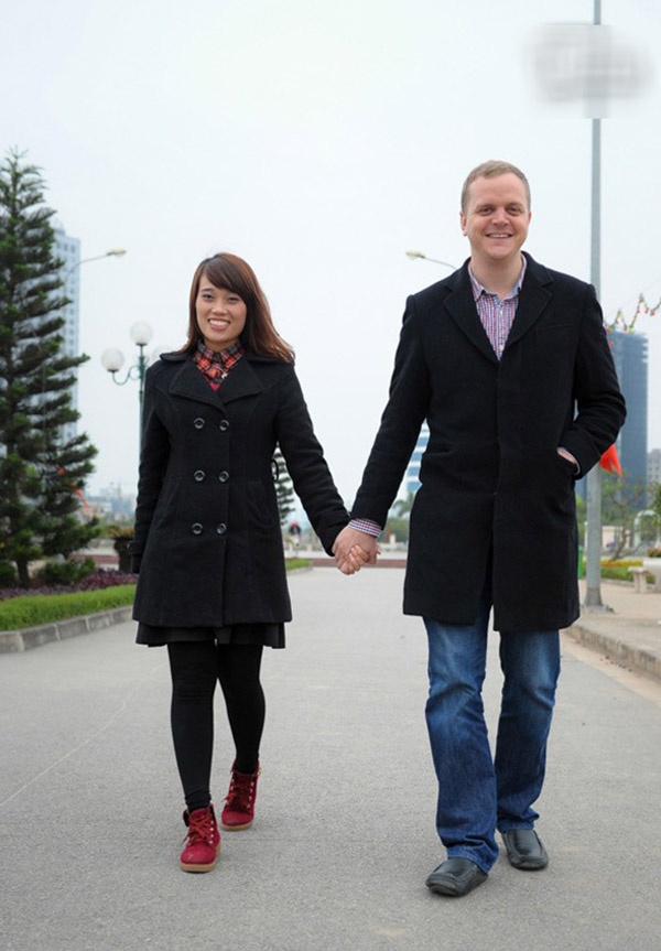 | Sau hai tháng gặp gỡ, quen biết, James Barnes lấy hết can đảm tỏ tình Nga nhưng ngay lập tức bị cô làm khó. Cô yêu cầu anh phải tỏ tình 1000 lần thì mới đồng ý, không ngờ, James Barnes làm thật. Cuối cùng, hạnh phúc đã mỉm cười với chàng trai kiên nhẫn, đến lần thứ 456, khi James Barnes về quê để thăm gia đình ở Anh thì Nga đã chủ động gọi điện và nói: "Em đồng ý". (Ảnh: Đất Việt). |