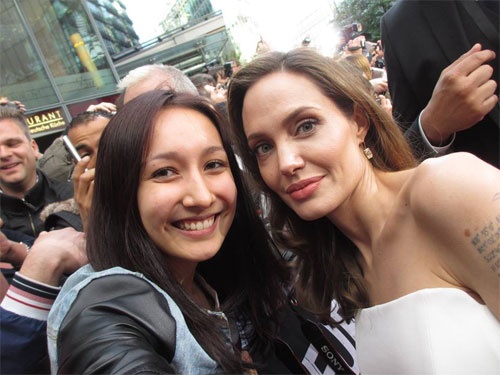 Khi Anna Trương đã có mặt tại Berlin để chuẩn bị nhập học hồi giữa năm 2013, cô tình cờ được gặp Angelina Jolie và Brad Pitt - hai ngôi sao điện ảnh hàng đầu thế giới - tại buổi ra mắt phim World War Z ở Berlin. 9X xinh đẹp chia sẻ khoảnh khắc tuyệt vời này khiến nhiều teen thầm mơ ước. Ảnh: FBNV.