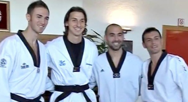 | Ibra (thứ hai từ trái sang) sở hữu đai đen taekwondo |