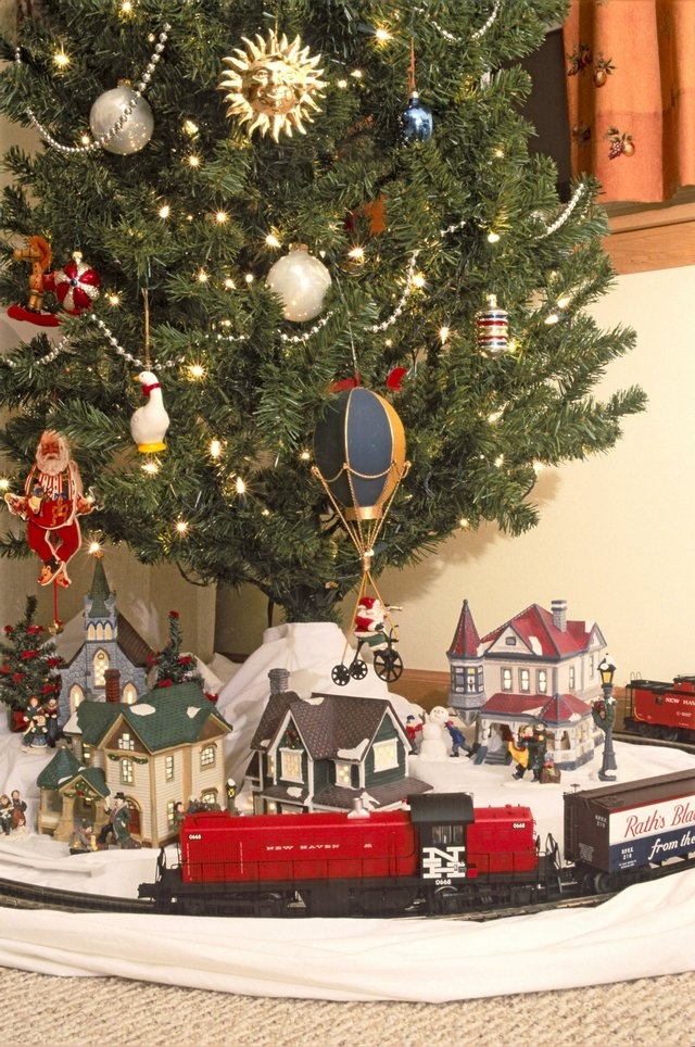 | Đoàn tàu đồ chơi chạy dưới gốc cây thông Noel. Ảnh: Flickr. |