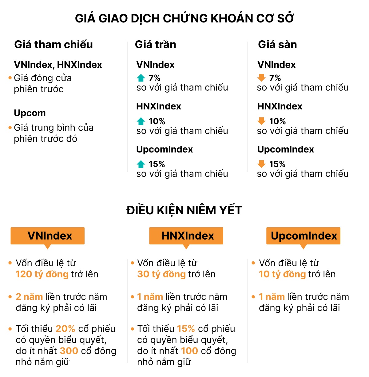 Để niêm yết, chứng khoán cơ sở phải đáp ứng được vốn hóa thị trường, tính thanh khoản, tỷ lệ tự do chuyển nhượng, kết quả hoạt động kinh doanh của doanh nghiệp phát hành và các tiêu chí khác theo quy định của Ủy ban Chứng khoán Nhà nước.