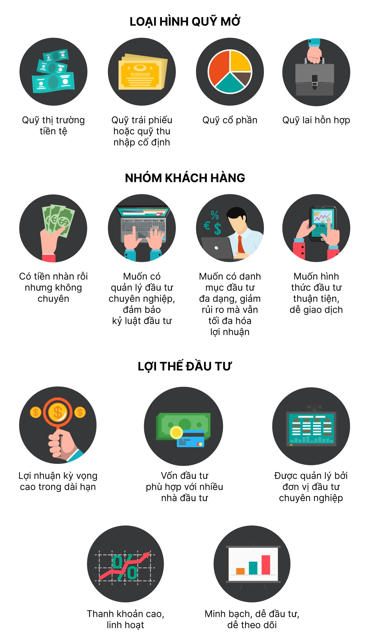 Quỹ mở do các nhà đầu tư có cùng mục đích góp vốn, được quản lý bởi công ty quản lý quỹ chuyên nghiệp.
