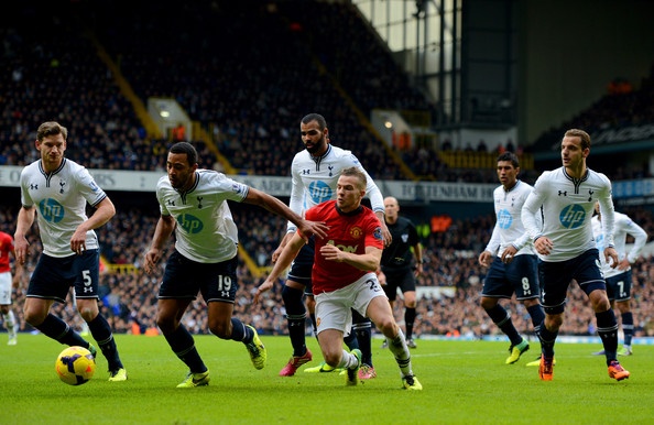 | So với trận hòa Cardiff 2-2, tiền vệ MU thi đấu tốt hơn khá nhiều. Ở trận gặp Tottenham, HLV David Moyes bố trí Tom Cleverley, Phil Jones chơi ngay phía trên bộ tứ vệ. Khả năng hoạt động rộng và tích cực của hai cầu thủ trên góp phần giúp Quỷ đỏ kiểm soát thế trận khá tốt. Trong khi đó, Kagawa và Valencia có những pha xử lý bóng kỹ thuật, đảm bảo sức tấn công cho MU. Tuy nhiên, hàng tiền vệ Quỷ đỏ vẫn chưa được đánh giá cao. |