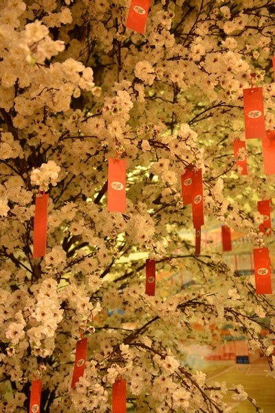 | Mảnh giấy ước nguyện mang màu đỏ tượng trưng cho sự may mắn. |