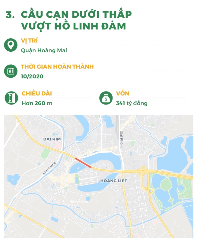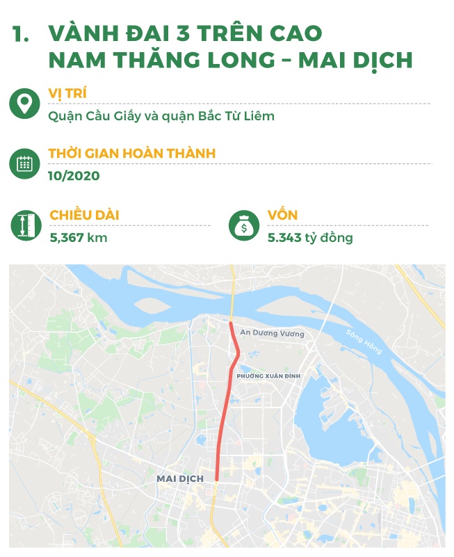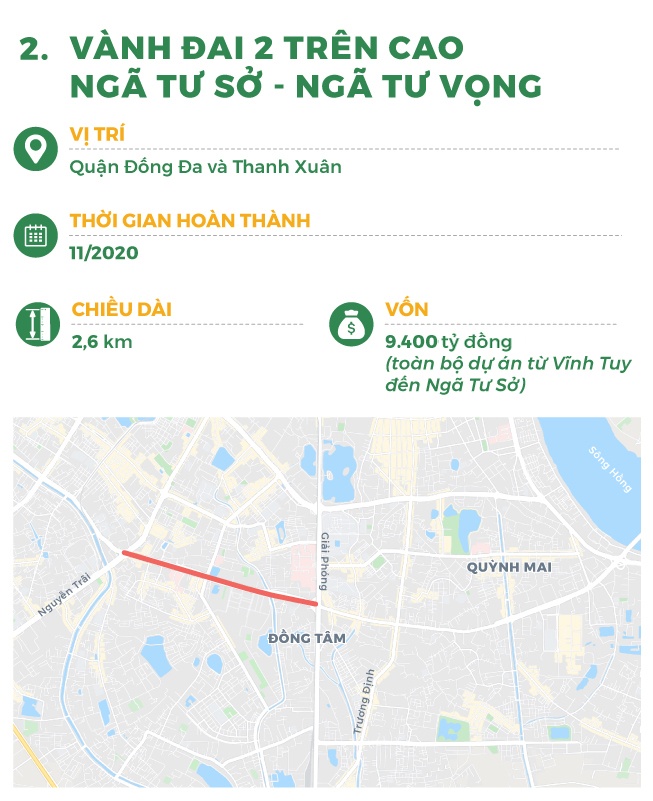 Kết quả đạt được là thủ đô đã đưa vào khai thác 5 dự án giao thông trọng điểm. Đây là các công trình thành phần hoặc kết nối các tuyến vành đai lớn, xóa bỏ các điểm đen ùn tắc.