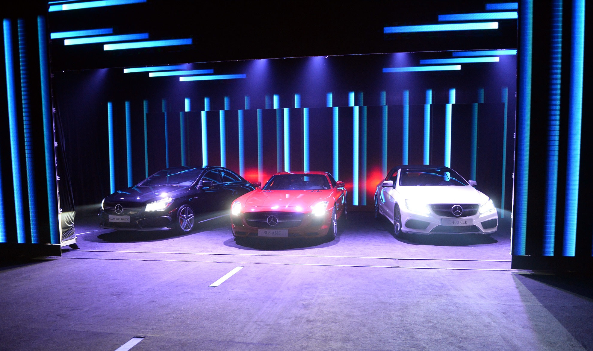 Mercedes Việt Nam vừa mang đến triển lãm riêng của hãng ở Hà Nội 18 mẫu xe, trong đó, đáng chú ý là 5 mẫu Mercedes-AMG bao gồm A45 AMG, G63 AMG, S63 AMG, CLA 45 AMG và siêu xe cánh chim SLS AMG. Khu vực dành cho những chiếc xe tính năng cao này được đặt tên "đội hình 2.168 mã lực" để chỉ tổng công suất động cơ của 5 model.