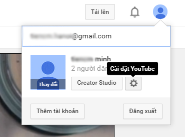 Để tắt bỏ chú thích theo mặc định trên toàn bộ trang YouTube, bấm vào biểu tượng tiểu sử (profile) bên góc cao bên phải. Sau đó, bấm vào biểu tượng "Cài đặt YouTube".