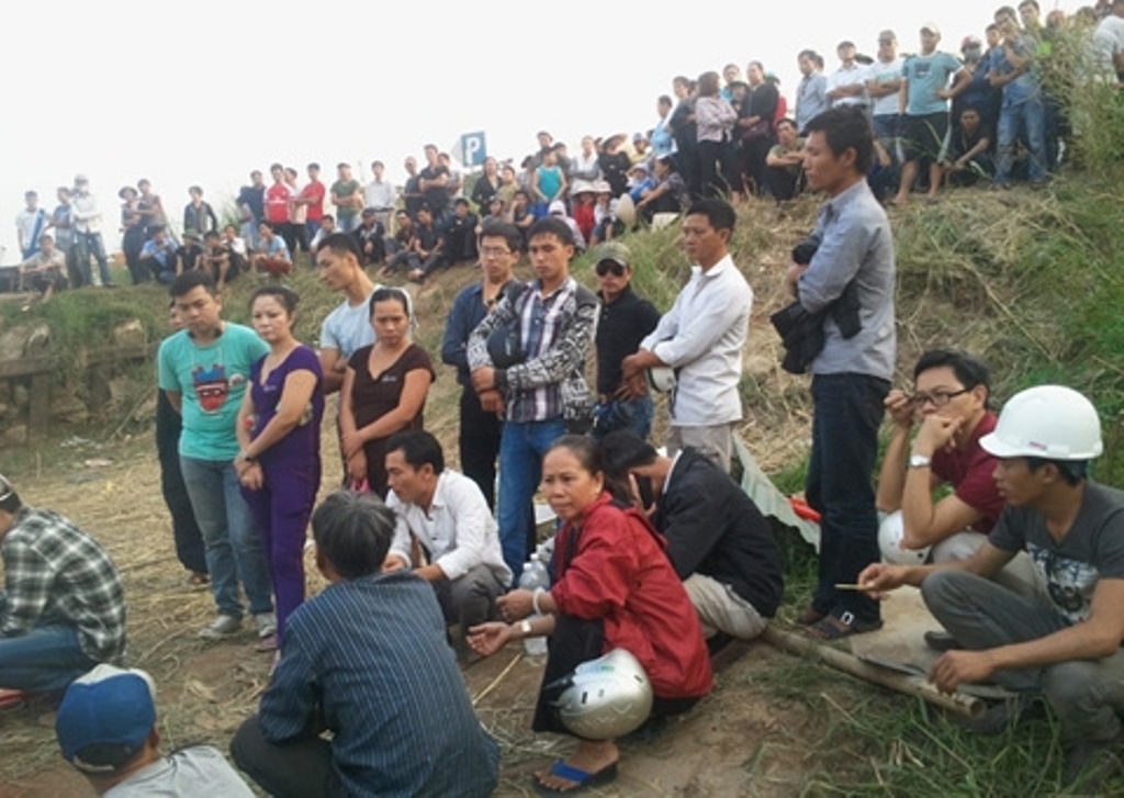 | Rất đông người dân đến chứng kiến cảnh nhà ngoại cảm tìm xác chị Huyền. |