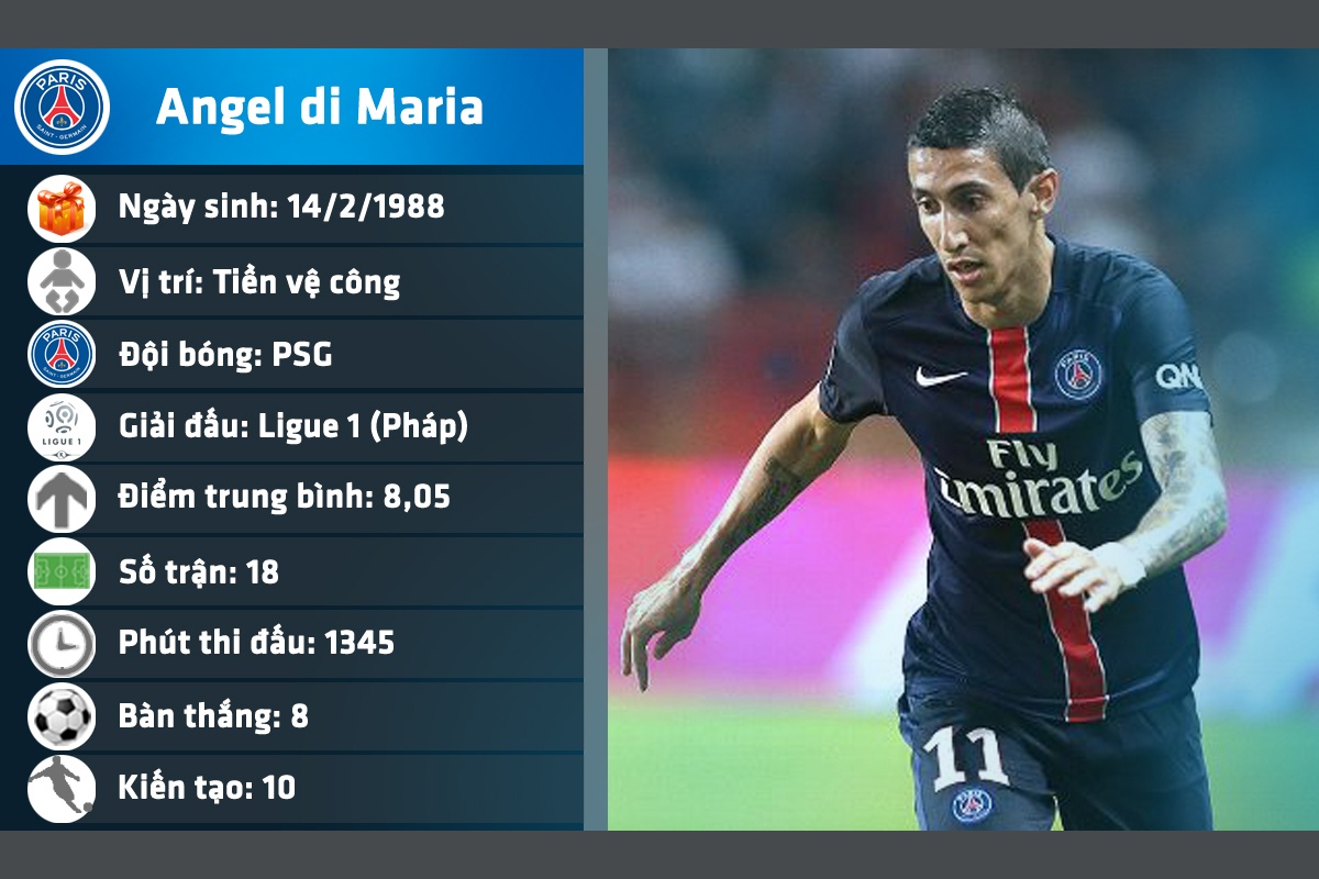 | Sau chia tay MU mùa hè 2015, tiền vệ Di Maria tìm lại khả năng chơi bóng sáng tạo khi chuyển đến PSG. |