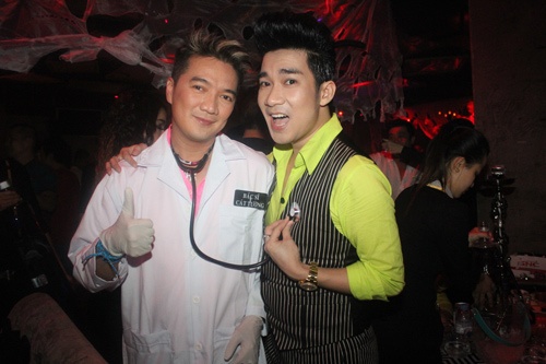 Trong buổi tiệc hóa trang vào ngày 31/10, Đàm Vĩnh Hưng đã mặc áo blouse trắng, đeo tai nghe, găng tay trắng và đặc biệt là một tấm biển nhỏ trên ngực ghi dòng chữ "Bác sĩ Cát Tường".