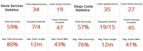 Nếu không thể đánh bại họ, thì hãy mua họ. Việc Chelsea cần gấp một tiền đạo hiệu quả là điều cả thế giới đều biết, và HLV Jose Mourinho không thể hài lòng hơn khi từ mùa này, ông sẽ được sở hữu một trong những chân sút xuất sắc nhất ở châu Âu. Costa chính là người đã giúp Atletico Madrid loại Chelsea khỏi Champions League mùa trước. Anh đồng thời đóng vai chính trong màn trình diễn vô địch La Liga ấn tượng của Atletico. 27 bàn lẽ ra đủ để giúp anh giành danh hiệu vua phá lưới, nếu như La Liga không có những nhân vật siêu phàm Lionel Messi và Cristiano Ronaldo. Với tỉ lệ ghi bàn 1 bàn mỗi 110 phút, tuyển thủ TBN cũng tạo ra 1 cơ hội dứt điểm mỗi 45 phút và có 3 đường kiến tạo. Với hàng tiền vệ hùng mạnh ở Chelsea, Costa thậm chí còn được kỳ vọng làm tốt hơn thế trong mùa giải này.