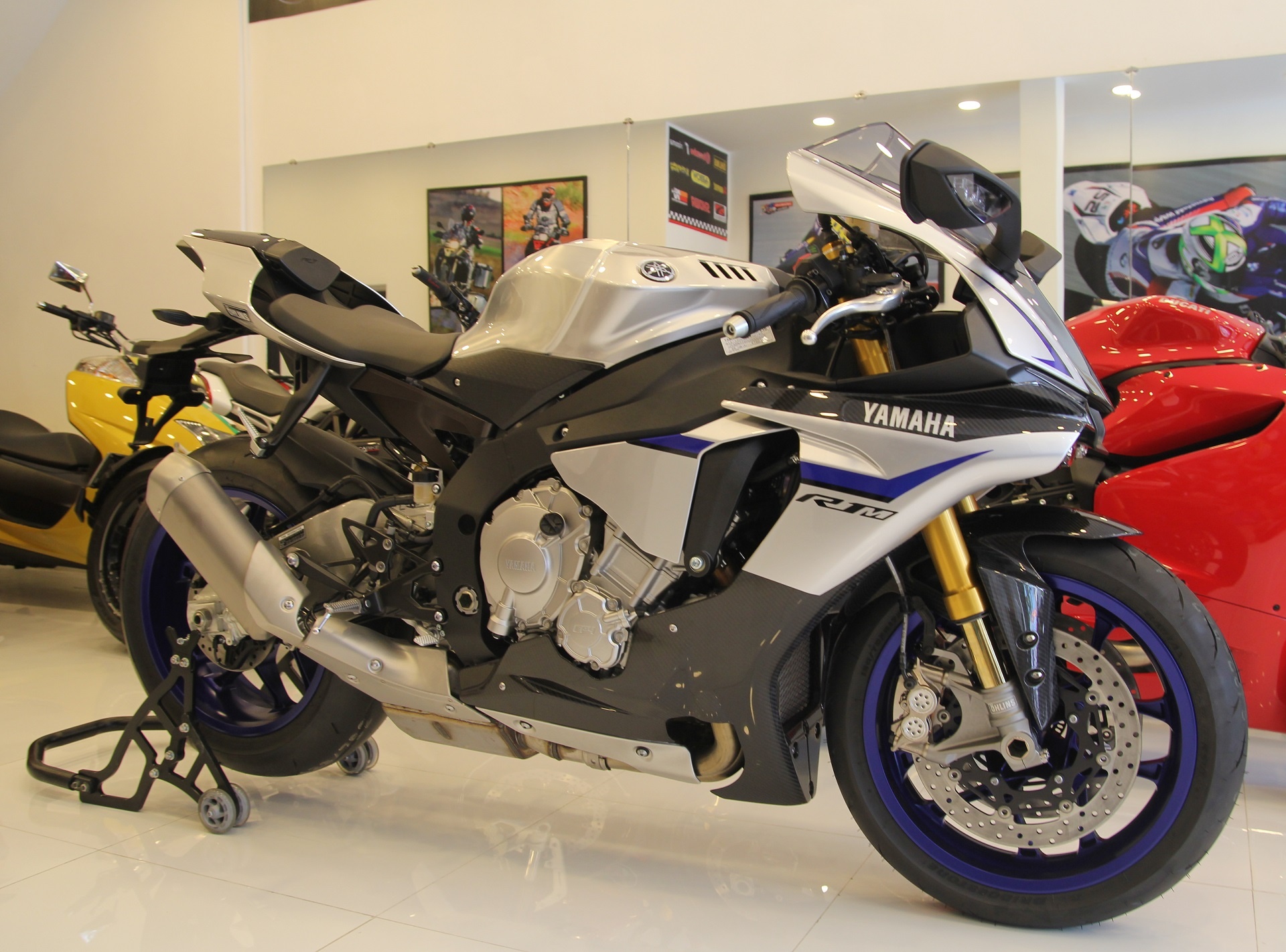 Yamaha YZF-R1M: Không lâu sau khi R1 đời 2015 xuất hiện tại Việt Nam, phiên bản đặc biệt R1M cũng được một đại lý tư nhân nhập về. R1M chỉ được sản xuất 500 chiếc cho thị trường châu Âu và hầu hết đã tìm được chủ nhân. So với R1 tiêu chuẩn, phiên bản M nổi bật nhờ bình xăng không sử dụng sơn mà dùng nhôm chà bóng, đầu xe và nhiều chi tiết phủ sợi carbon. R1M sử dụng khối động cơ crossplane 4 thì, làm mát bằng chất lỏng, phun nhiên liệu điện tử, bốn xi-lanh thẳng hàng, dung tích 998 cc, sản sinh 200 mã lực tại 13.500 vòng/phút cùng 112,4 Nm mô-men xoắn tại 11.500 vòng/phút. Xe có giá gần 900 triệu đồng tại Việt Nam. Ảnh: Minh Anh. |