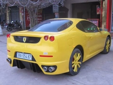 | Một chiếc coupe hai cửa được chế lại kiểu dáng Ferrari F430 ở Hà Tĩnh. Phần đuôi xe mang phong cách thiết kế đặc trưng của siêu xe đến từ Italia với kiểu đèn hậu tròn tách rời, cản sau cứng cáp gắn logo ngựa chiến Ferrari cùng cặp ống xả đôi. Xe có màu sơn vàng và được trang bị bộ la-zăng 5 chấu kép kiểu thể thao. Ảnh: Autovn. |