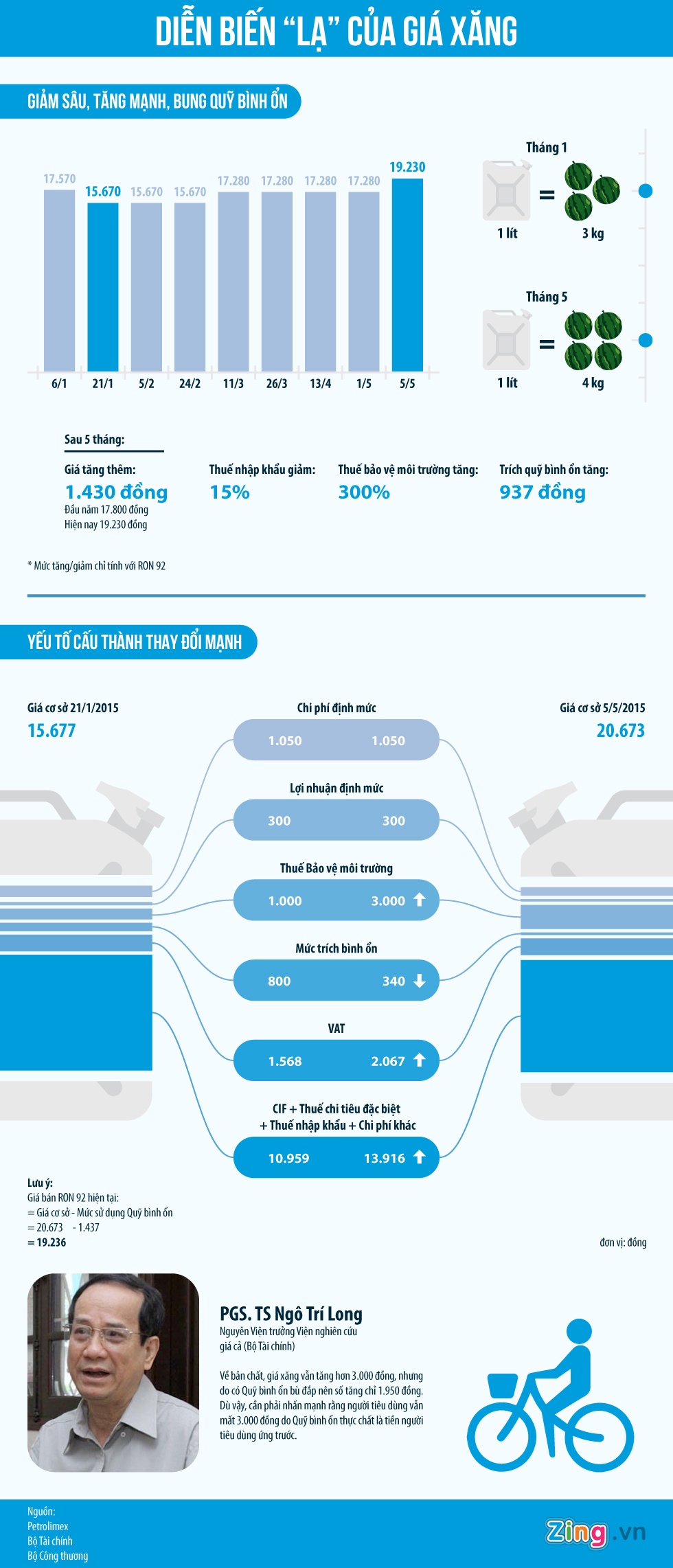 5 tháng giảm sâu, tăng mạnh của giá xăng
