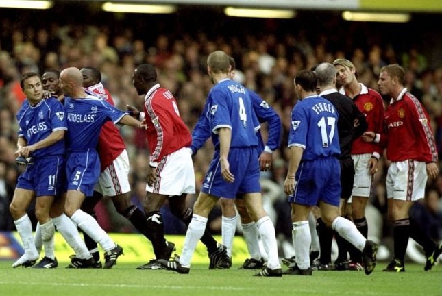 | Trước chuyến làm khách đến sân Stamford Bridge tháng 10/1999, M.U trải qua mạch 29 trận bất bại. Quỷ đỏ không thể kéo dài thành tích trên khi thua 0-5 trước Chelsea. Ở trận này, Gustavo Poyet và Chris Sutton giúp đội chủ nhà dẫn 2 bàn sau 16 phút. Sau đó, M.U gặp khó khăn khi Nicky Butt bị truất quyền thi đấu do chơi xấu với Dennis Wise ở phút 23. Trong thế trận chơi thiếu người, M.U nhận thêm 3 bàn thua. |