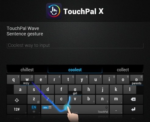 TouchPal có một số tính năng điều khiển bằng cử chỉ rất độc đáo, như vuốt lên phía trên từ thanh dấu cách để làm xuất hiện các biểu tượng mặt cười, cũng như công cụ đo tốc độ đánh máy của bạn. Công cụ nhận diện cử chỉ Curve and Wave giúp bạn soạn thảo bằng cách vuốt từ phím này sang phím khác mà không phải nhấc tay khỏi màn hình. Bằng cách nhấn giữ lâu trên phím dấu cách, bạn có thể gửi đi tin nhắn giọng nói. TouchPal thông báo trên website của công ty rằng ứng dụng này sẽ sớm có phiên bản cho iOS 8.
