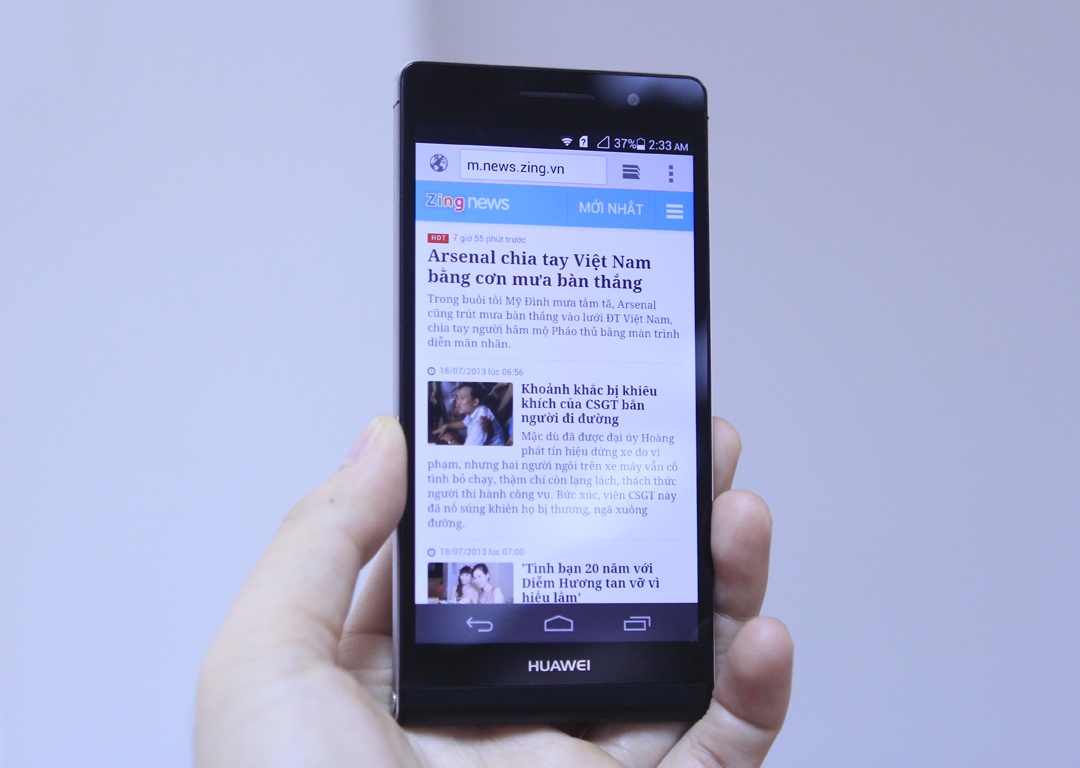 | Các hãng sản xuất Trung Quốc đã phần nào tạo được dấu ấn trên thị trường trong năm qua. Trong ảnh là chiếc Ascen P6 - model mỏng đúng 6,18mm của Huawei. Ảnh Thành Duy. |