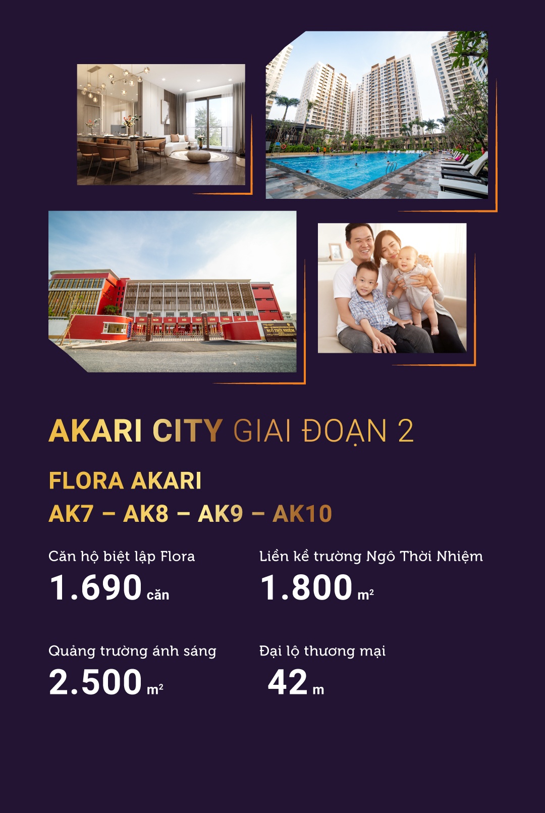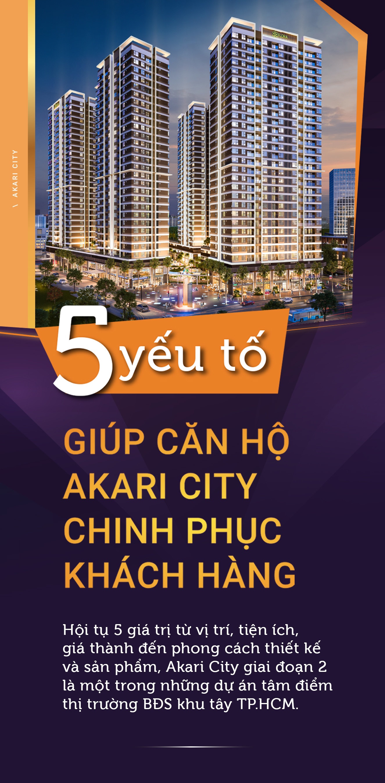 Sau khi bàn giao thành công giai đoạn 1, chủ đầu tư Akari City giới thiệu 4 tòa tháp căn hộ mới (tổng 1.690 căn hộ) thuộc giai đoạn 2: AK7, AK8, AK9, AK10. Trong dự án giai đoạn 2, hệ tiện ích, không gian nội khu, vị trí các tòa tháp căn hộ… được chủ đầu tư quy hoạch kỹ lưỡng, tạo nên không gian sống chuẩn phong cách Nhật và đảm bảo yếu tố giao thương lẫn an cư cho cư dân.