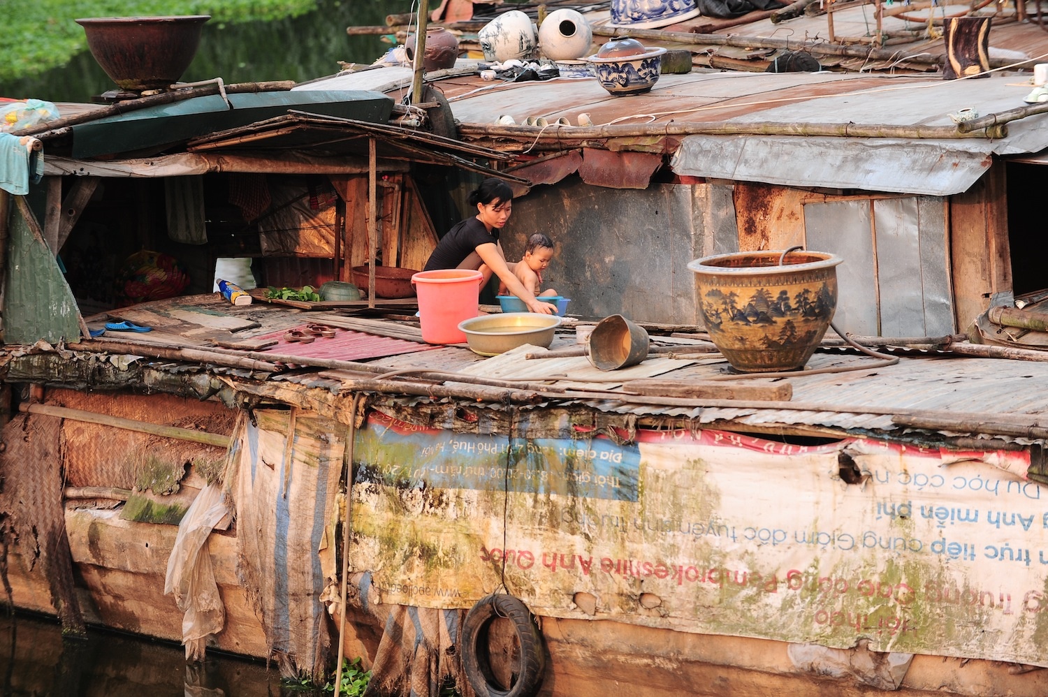 Bên ven sông Hồng thuộc phường Nhật Tân, quận Tây Hồ (Hà Nội), nhiều năm nay xuất hiện một làng đặc biệt. Khu vực này có khoảng 50 hộ dân, sống chủ yếu trên thuyền. Nghề chính là nhập và bán đồ gốm. Họ ở trên thuyền hoặc lên hẳn trên bờ dựng lán, nhà cấp 4. Mỗi gia đình sử dụng một chiếc tivi dùng anten cắm trên nóc, gần như tách biệt với thành phố dù cách trung tâm chưa tới 5 km.