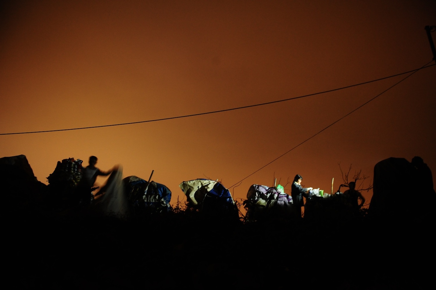 Màn đêm buông xuống, nơi đây vẫn nhộn nhịp các công việc chuẩn bị cho ngày hôm sau chở hàng đi bán.