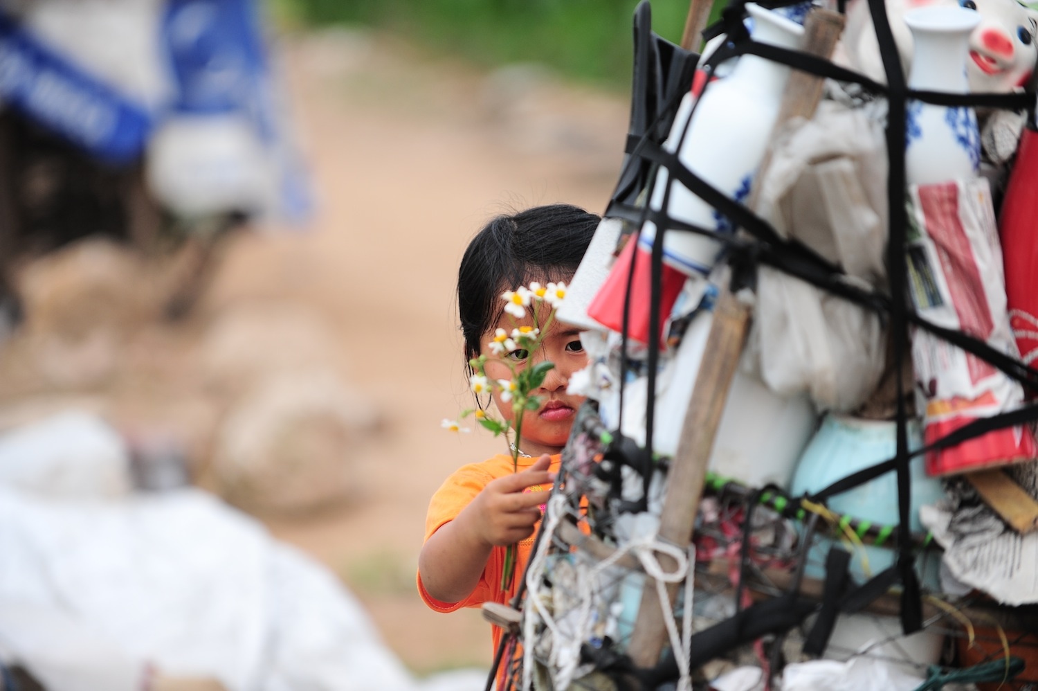 Những em lớn tuổi hơn một chút thường tự chơi một mình, thơ thẩn bên ven sông.
