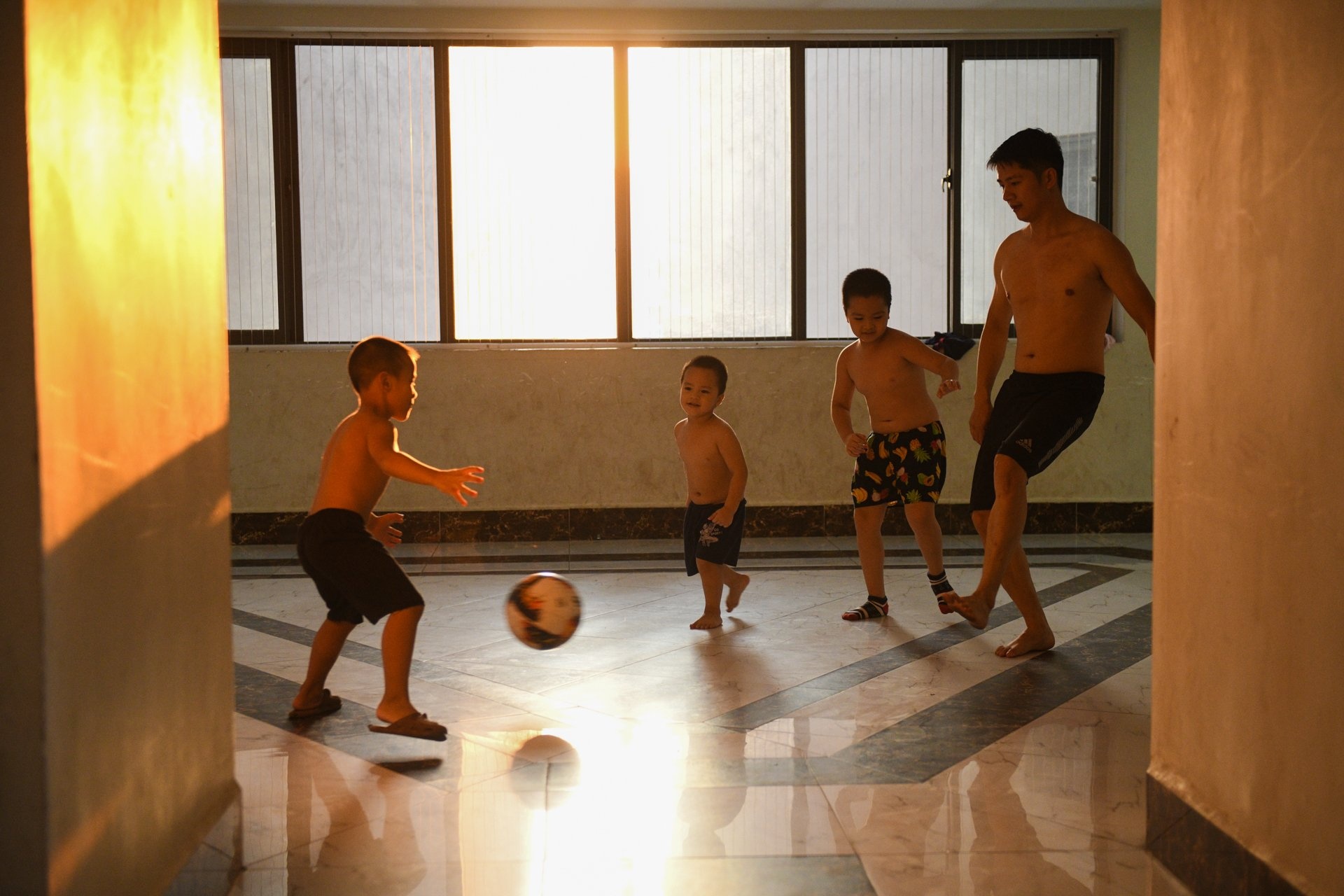Vừa đu mình lên cây xà bắc ngang trước cửa phòng ngủ, Dế (Nhất Phong) vừa hào hứng gọi bố. Nghỉ học từ tháng 4 khi dịch Covid-19 bùng phát tại Hà Nội, Dế coi đây là kỳ nghỉ hè dài nhất của mình trước khi cu cậu chính thức bước vào lớp 1. Còn với bố Đào Hiếu và mẹ Tuyết Nga, khi công việc cũng ảnh hưởng bởi dịch bệnh thì gần 2 tháng qua, ngày nào cũng được coi là chủ nhật.