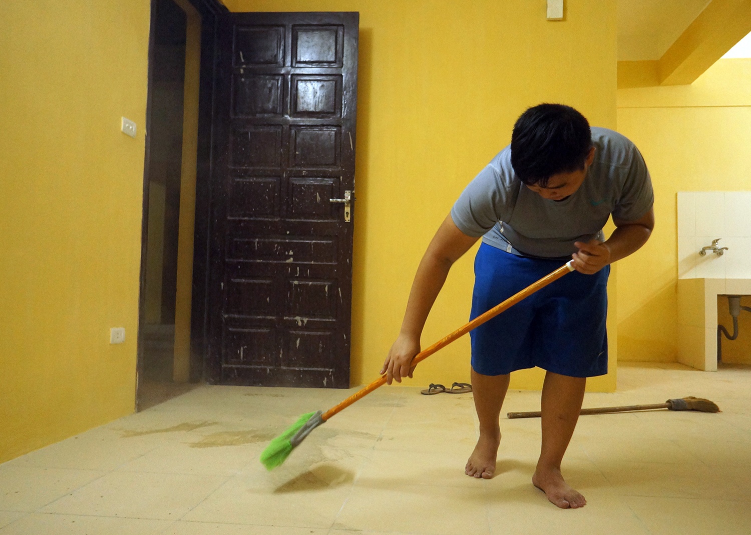 Em Hiền ở Hải Dương, lên Hà Nội ở cùng mẹ được 2 năm. Hai mẹ con cậu ở căn hộ vừa được bàn giao, mới làm xong nên bừa bộn, trống trải. Hiền tranh thủ quét dọn sàn trong khi mẹ em đi kiếm manh chiếu ngả lưng qua đêm.