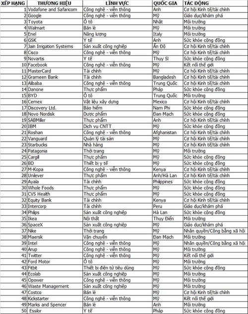 Dưới đây là top 10 thương hiệu đầu tiên trong danh sách trên:
