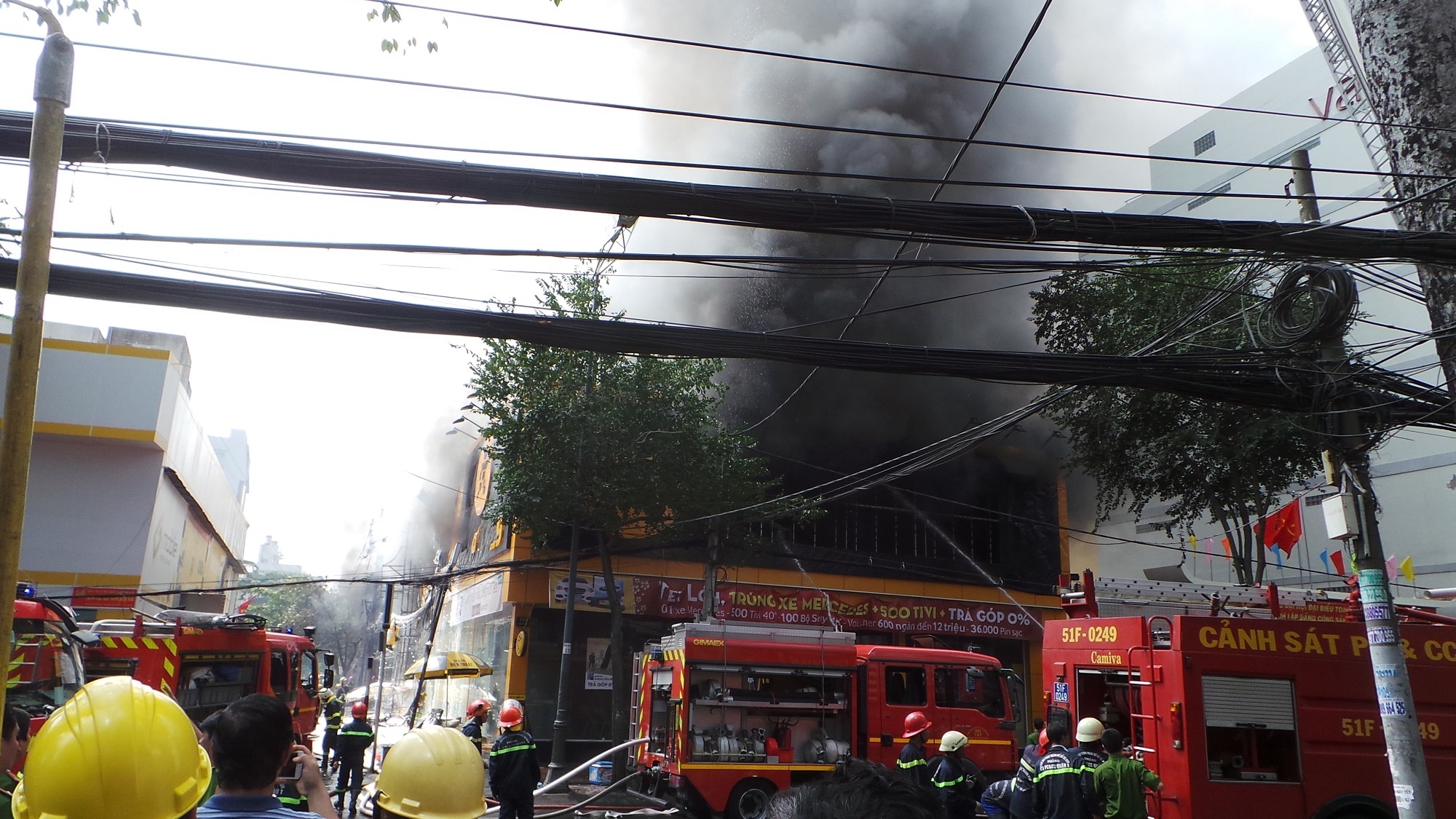 Thượng tá Lê Quốc Bảo - Trưởng phòng Cảnh sát PCCC quận 1 (TP HCM) cho biết, vụ hỏa hoạn đã thiêu rụi gara ôtô Thần Châu do ông Đỗ Quang Cường làm chủ trên đường Cống Quỳnh, quận 1 và lan sang một quán ăn, siêu thị Thế giới di động.