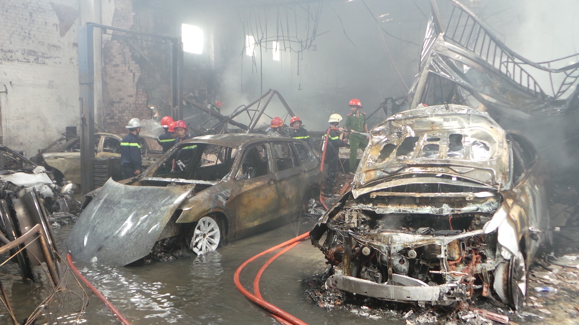 Đến khoảng 12h30, lực lượng chức năng khống chế và dập tắt vụ hỏa hoạn. May mắn vụ cháy không gây thiệt hại về người nhưng đã thiêu rụi toàn bộ gara cùng hơn 10 ôtô đang chờ sửa chữa.