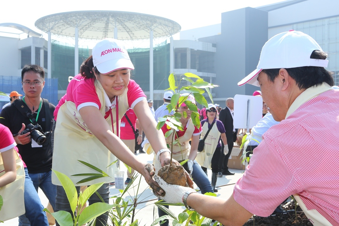 Quy trình trồng cây được ban tổ chức chuẩn bị, hướng dẫn tỉ mỉ đến người tham gia từ công đoạn nhúng cây con vào nước, đào đất, ủ rơm và buộc giữ… đảm bảo điều kiện tốt nhất cho cây sinh trưởng và phát triển sau khi trồng. Từ nay đến khi khai trương, AEON dự định sẽ hoàn thành trồng 20.000 cây xanh xung quanh TTTM này.
