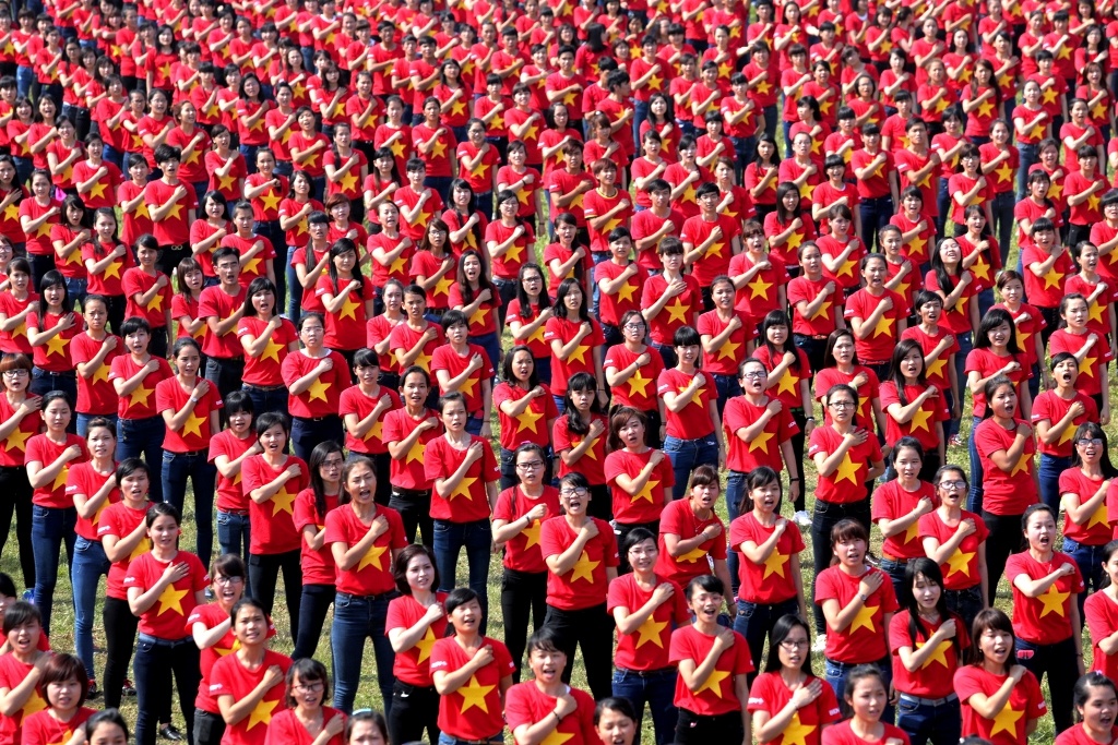 | Kết thúc màn trình diễn ấn tượng và hào hùng đậm chất tuổi trẻ đất võ, hơn 5.500 Đoàn viên lại tiếp tục tham gia xác lập một kỷ lục đầy ý nghĩa khác. Đó chính là hình ảnh logo huy hiệu Đoàn tạo nên từ nhiều người nhất tại Việt Nam. |