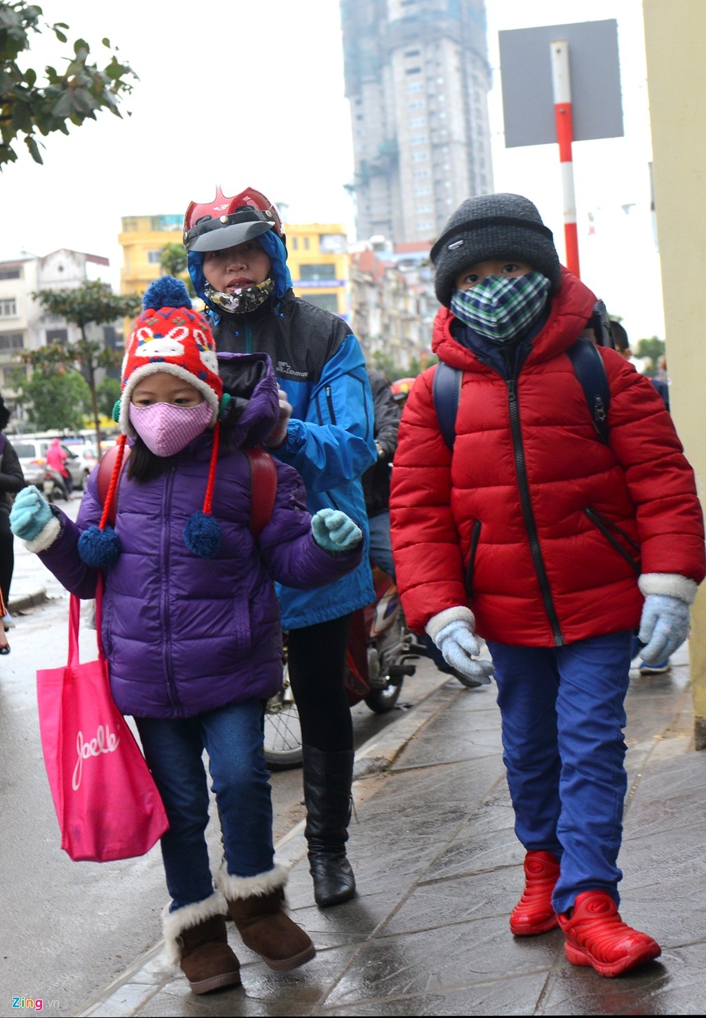 quần áo chống gió, đeo găng tay, quàng khăn, đội mũ, bịt tai giúp giữ ấm cơ thể ngày lạnh giá. Ảnh: Anh Tuấn. |