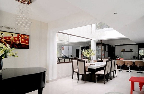 Đến thăm ngôi nhà Quyền Linh, chắc hẳn ai cũng phải ngỡ ngàng trước vẻ tiện nghi sang trọng. Căn hộ được trang trí đẹp một vẻ thanh thoát, nhẹ nhàng với phong cách nội thất đơn giản, thanh lịch. Bà xã của Quyền Linh cho biết, cô rất thích trang trí nhà theo phong cách châu Âu, do vậy bên cạnh sự quan tâm đến nội thất tự nhiên, cô cũng chú ý đến cách bài trí ánh sáng. Phong cách sống phù hợp sinh thái, với đồ gỗ trơn đơn giản, hài hòa với căn phòng thanh lịch. Nhờ đó mà sự sang trọng của những đèn trang trí được nổi bật hơn hẳn...