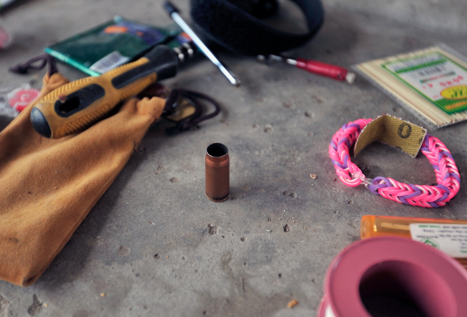 Một chiếc vỏ đạn được tìm thấy trong đống đồ đạc lộn xộn.