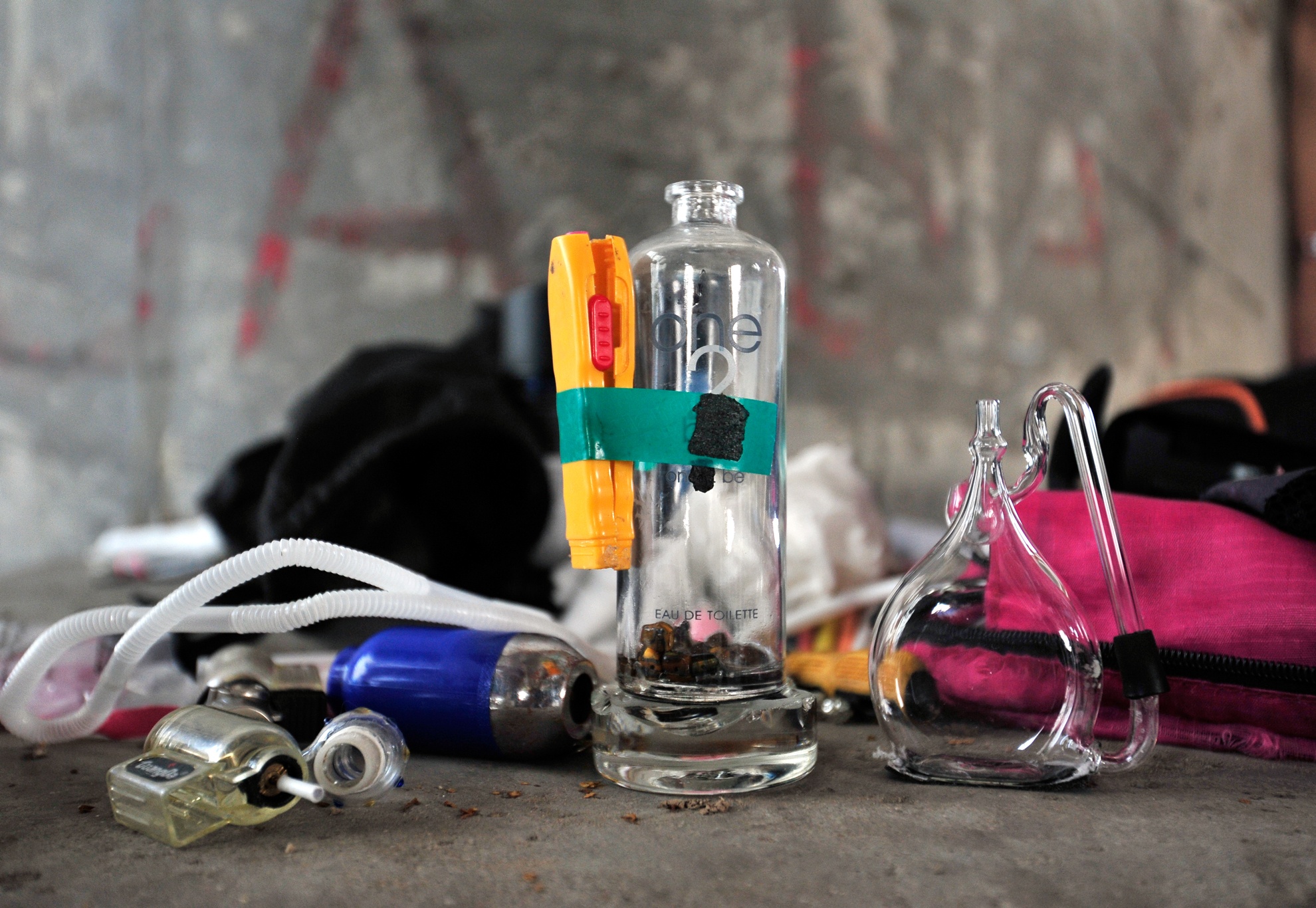 Bình và khò dùng để đập đá được quấn cẩn thận để trong túi xách.