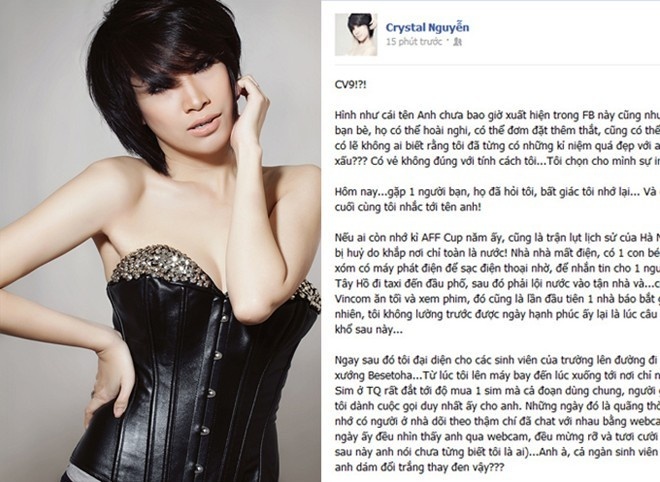 | Nếu như Công Vinh hầu như chưa từng lên tiếng về tình cũ thì Pha Lê lại đi từ úp mở cho tới công khai nói về Công Vinh qua biệt danh CV9 bằng những từ ngữ trách móc. Theo một nguồn tin, Pha Lê và Công Vinh gặp nhau khi anh vẫn chưa là ngôi sao sân cỏ. Khi đội tuyển Việt Nam đăng quang AFF Cup 2008 nhờ cú đánh đầu của Công Vinh thì đó cũng là lúc kết thúc mối tình của họ. |