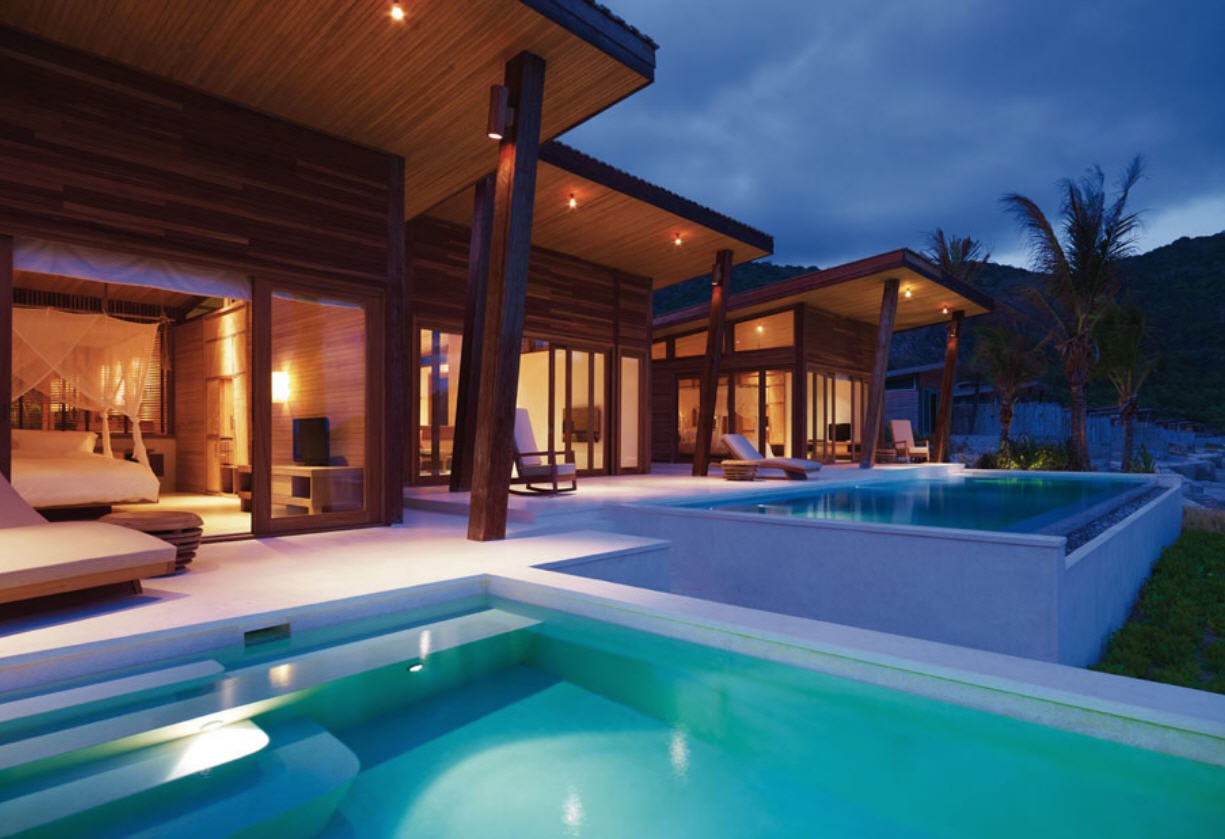 | Lấy cảm hứng thiết kế và xây dựng từ lăng mộ hoàng gia Từ Đức ở Huế, Nam Hải là một khu nghĩ dưỡng được đánh giá cao về kiến trúc, trang trí và thiết bị. Mỗi phòng tại Nam Hải đều có sân riêng của mình, phòng tắm trong nhà và ngoài trời và máy pha cà phê cá nhân. Khu nghỉ mát tự hào với 3 hồ bơi bên bãi biển và 1 spa. Giá phòng tại đây từ 800USD/đêm. Ảnh: Nam Hải resort |