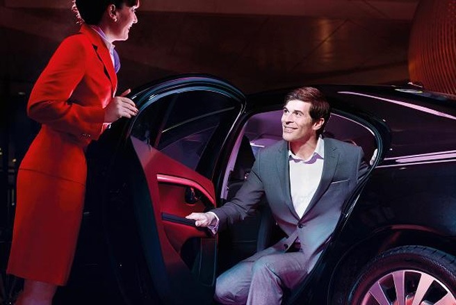 Không chỉ được cung cấp dịch vụ xa xỉ trên máy bay, hành khách đi khoang hạng nhất của một số công ty còn được phục vụ đưa đón tận cửa. Virgin Atlantic, Lufthansa và Emirates nằm trong số những hãng hàng không cung cấp dịch vụ xe hơi đưa đón tận nơi cho khách hàng hạng sang. Tuy nhiên, ở một số hãng, khoảng cách từ sân bay tới điểm đón, tiễn hành khách có giới hạn cụ thể.
