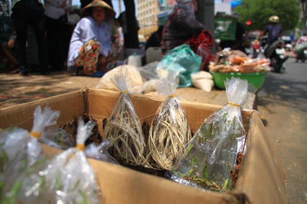| Góc phố nhỏ chuyên bán sâu bọ, cào cào, châu chấu... bên hông Thuận Kiều Plaza (đường Hồng Bàng, Q.5. |
