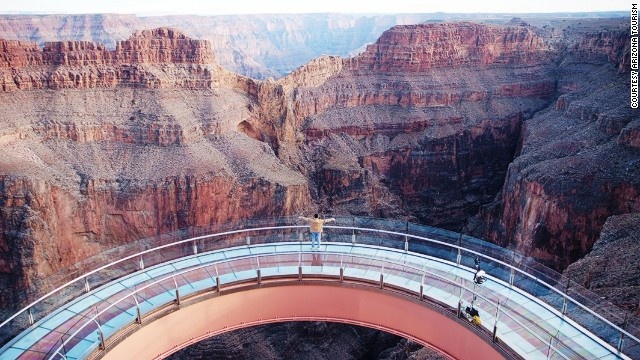 Đường đi bộ ở hẻm núi Grand Canyon giống như một cây cầu có dáng như "vành móng ngựa", làm từ thuỷ tinh trong suốt, dài 20m và chìa ra ngoài rìa một hẻm núi ở độ cao 1.000m.