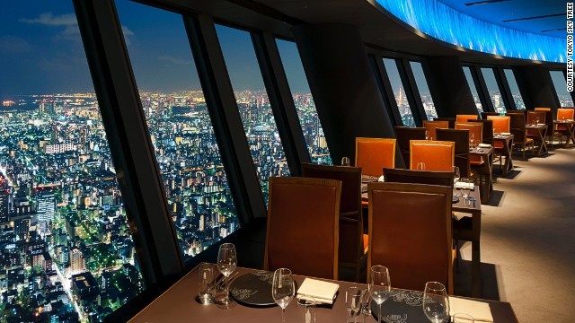 Skytree có một nhà hàng và hai quán cafe trên hai đài quan sát với sàn kính trong suốt để du khách có thể nhìn thẳng xuống dưới và có cảm giác mình đang lơ lửng giữa không trung.