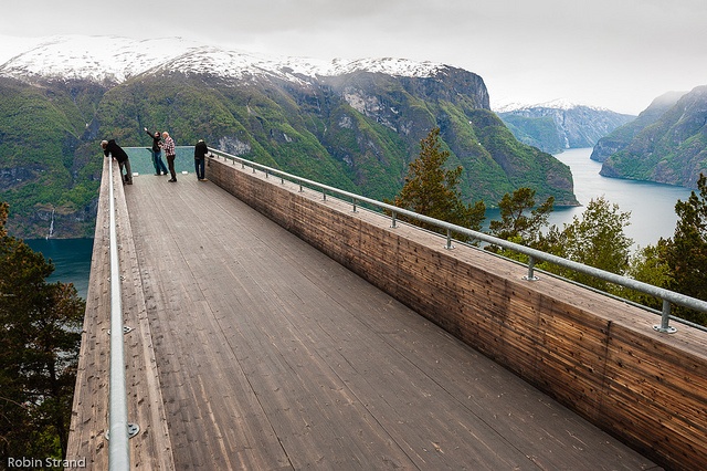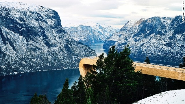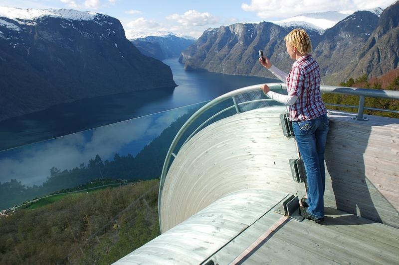 Với chiều cao hơn 600m phía trên vịnh hẹp Aurland ở Na uy, đài quan sát này trở thành một địa điểm "luyện" tinh thần thép cho những khách du lịch sợ độ cao.