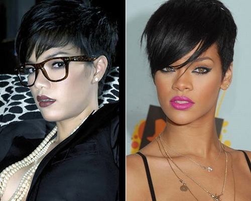 | Phùng Ngọc Yến – Rihanna: Gương mặt góc cạnh, tóc ngắn, đánh son môi đậm và vẽ mắt xếch… là những đặc điểm khiến người mẫu Phùng Ngọc Yến trông như chị em của ca sĩ Rihanna. Nhiều fan còn so sánh hình ảnh cả hai để tìm ra những điểm giống nhau nhất. Chính vì thế, trên một vài trang thông tin điện tử, chân dài Việt Nam còn hay được gọi là “Rihanna Việt Nam”. Điều này không gây khó chịu cho Phùng Ngọc Yến, cô còn cộng tác cùng một vài stylist thực hiện những bộ ảnh thời trang với hình tượng và phong cách của giọng ca Drunk on Love. |