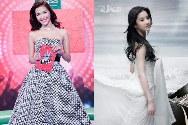 Phạm Mỹ Linh – Lưu Diệc Phi: Theo bạn, MC của chương trình Giọng hát Việt 2015 có điểm nào giống “thần tiên tỷ tỷ”. Với Phạm Mỹ Linh, cô và Lưu Diệc Phi không giống nhau nhiều lắm, vì một người sở hữu cặp mắt hai mí, một người sở hữu cặp mắt một mí. Tuy nhiên, nét đẹp mong manh, thanh thoát, nụ cười dịu dàng, hay mặc trang phục màu nhạt, tóc xõa bồng bềnh… là những đặc điểm khiến nhiều fan liên tưởng đến nữ diễn viên Trung Quốc mỗi khi ngắm Phạm Mỹ Linh. Ngoài đặc điểm ngoại hình, giữa hai người đẹp này cũng có quan điểm sống giống nhau, hạn chế chia sẻ chuyện riêng tư và xây dựng hình tượng trong sáng.