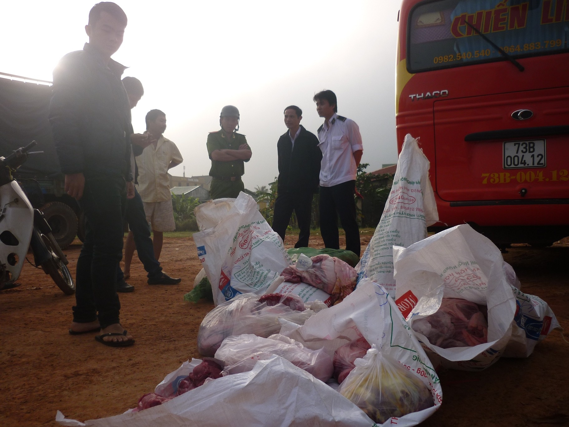 5h30 ngày 30/1, Đội cảnh sát môi trường phối hợp với Kiểm dịch thú y TP Đồng Hà (Quảng Trị) tiến hành kiểm tra xe khách BKS 73B do Nguyễn Thanh Tuyền (trú xã Cam Thuỷ, huyện Lệ Thuỷ, Quảng Bình) điều khiển sau khi nhận được tin báo.