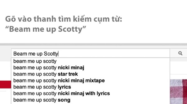 Lại lấy cảm hứng từ một tác phẩm nổi tiếng nữa, lần này YouTube mượn tạm câu nói “Beam me up, Scotty” trong Star Trek cho tính năng vui này. Theo đó, khi bạn gõ cụm từ nêu trên vào thanh tìm kiếm, các video kết quả trả về sẽ không xuất hiện ngay lập tức như bình thường. Thay vào đó, chúng sẽ được chuyển đến lần lượt cùng một... làn khói xanh khá bí ẩn.
