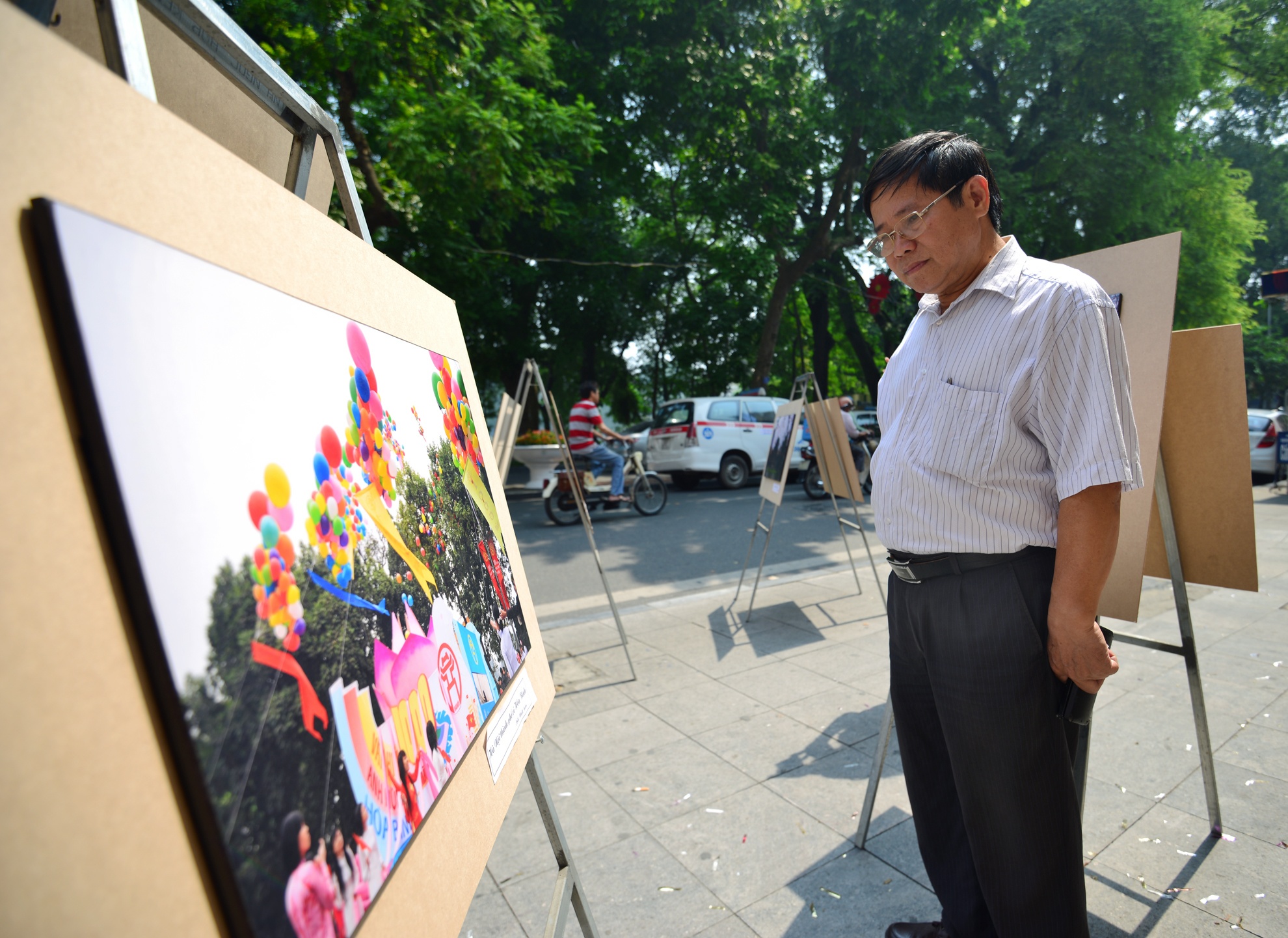 | Nhiều khách đến xem mang theo bồi hồi xúc cảm, khi chứng kiến vẻ đẹp, sự phát triển của Hà Nội qua các bức ảnh. |