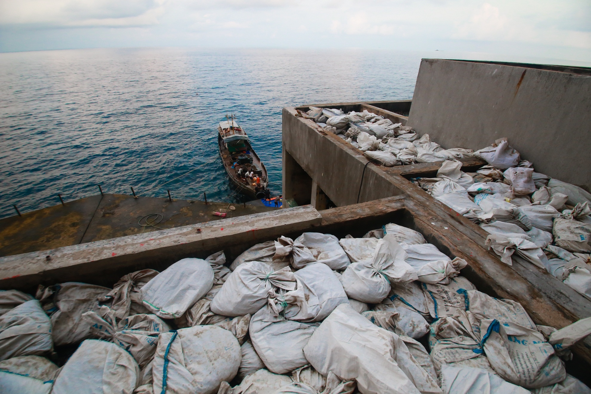 Vào mùa biển động tàu tiếp tế không thể cập vào cầu tàu chính mà phải tránh gió và sóng ở hai bên đảo. Công tác tiếp tế khi đó cực kỳ gian khổ. Hàng được kéo bằng ròng rọc lên miệng hầm cách mặt biển khoảng 30 mét.