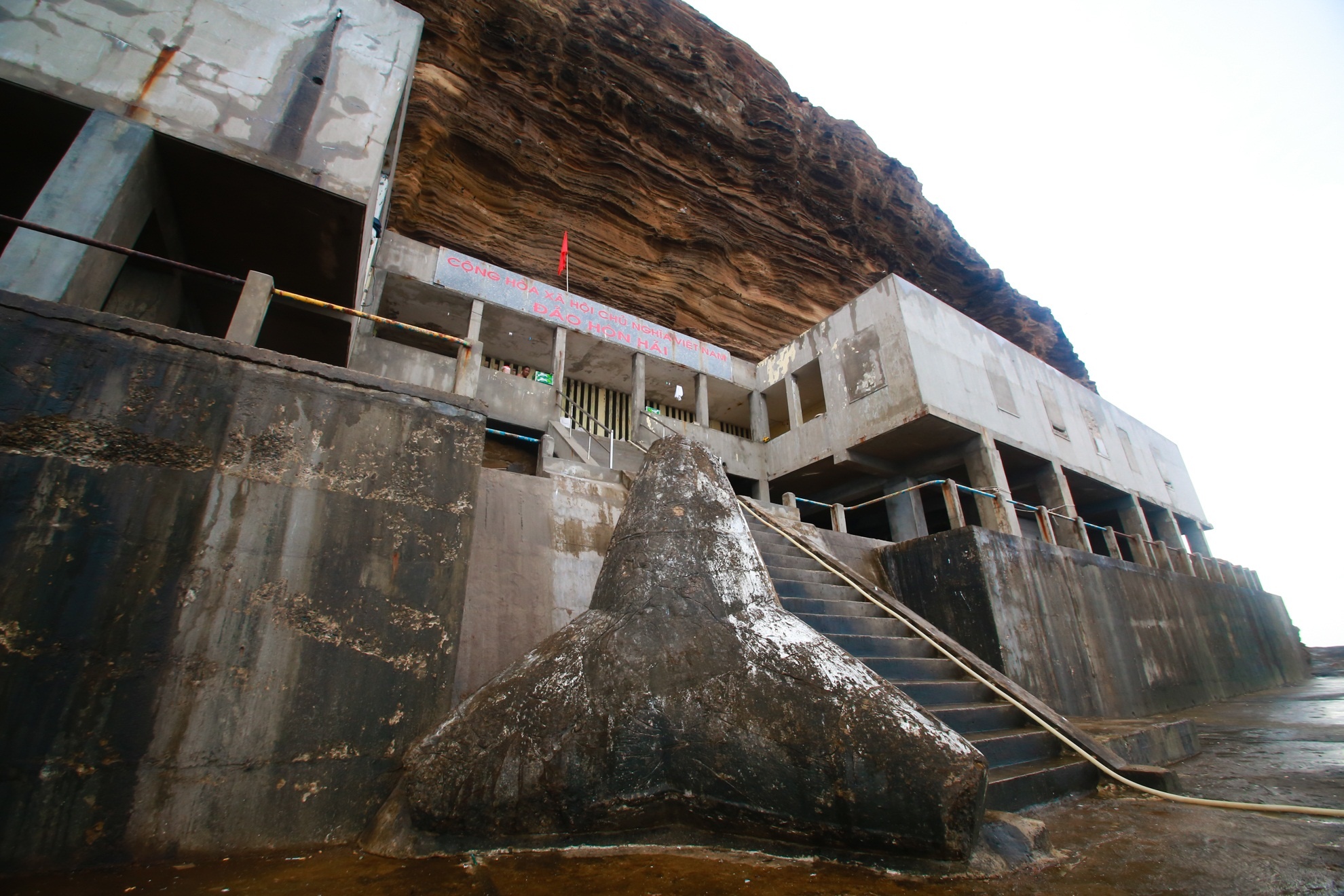 | Hòn Hải được hình thành từ núi lửa liên tục bị sạt lở bởi sóng gió và thời tiết theo thời gian. Để đảm bảo an toàn, khi xây dựng toàn bộ công trình phải đổ bê tông 100%, không sử dụng gạch. Bên cạnh đó trên nóc tòa nhà phải có các bao tải đá dăm trộn cát để làm giảm áp lực trong trường hợp đá lở. |